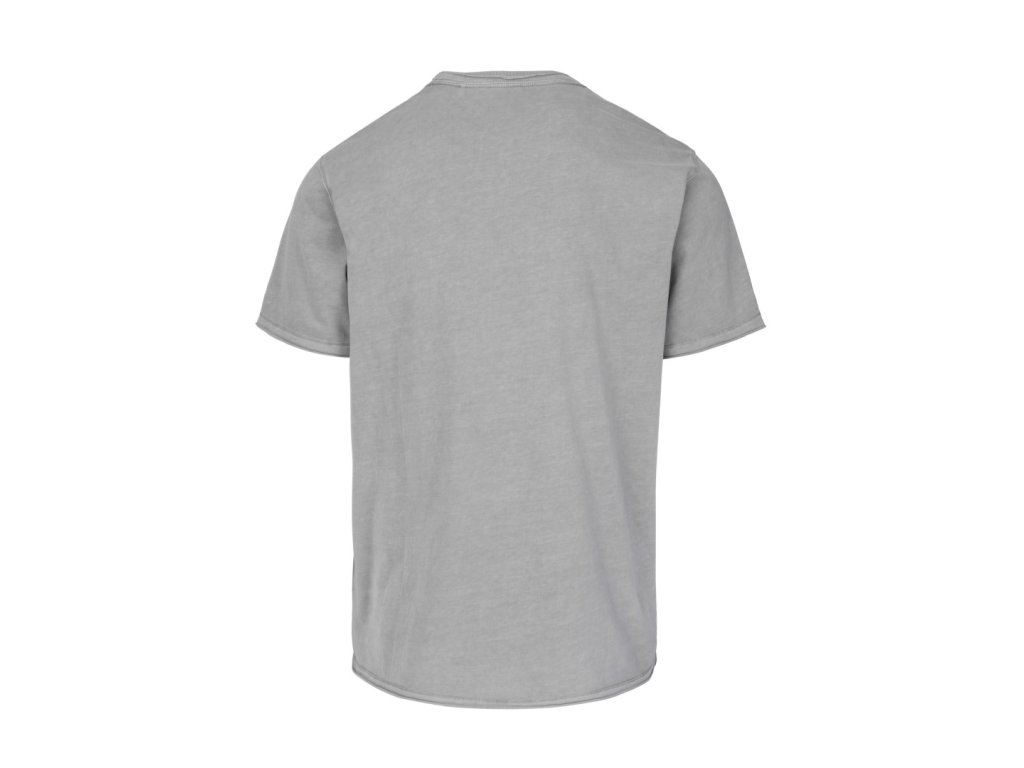 Přiléhavý střih zdůrazňující siluetu. Tričko vyrobeno z kvalitní bavlněné tkaniny. Materiál a barva s efektem sepraní. Lem Raw Edge.. Kulatý žebrovaný výstřih.