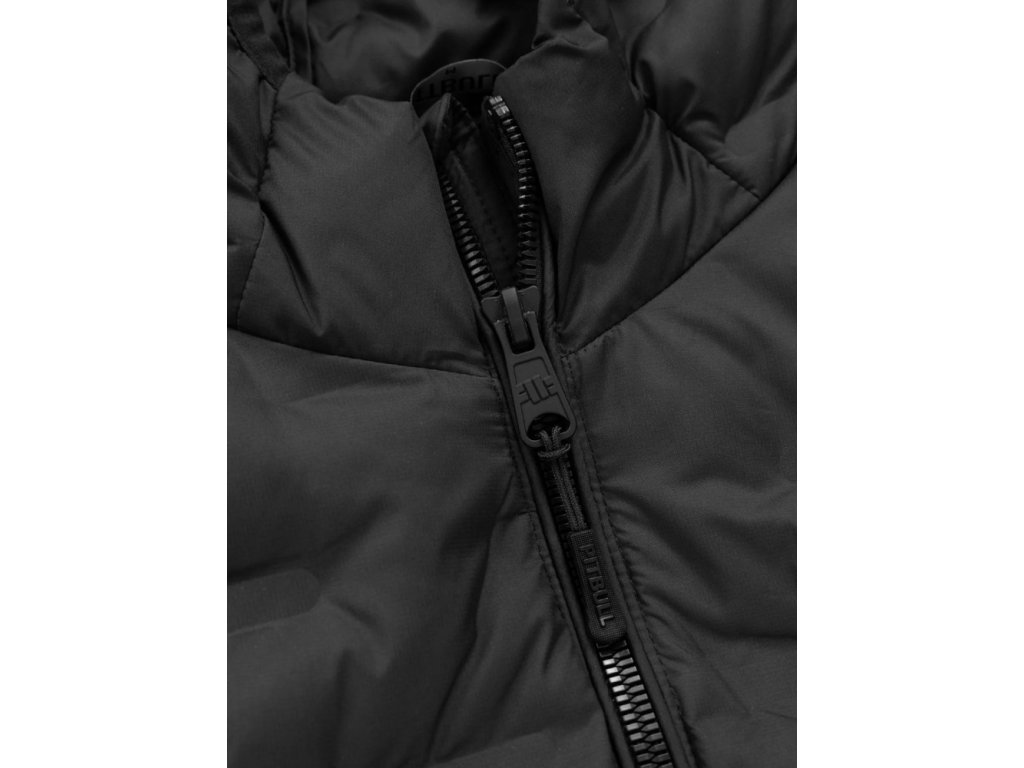Široký lem ve spodní části vesty. Dvě boční kapsy na zip. Praktická vnitřní kapsa. Lemování na průramcích a kapuci