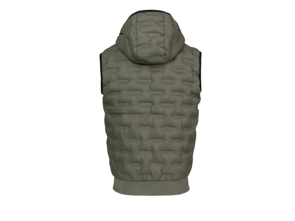 Pánská prošívaná vesta s kapucí. Klasický střih, délka po boky. Prošívaná a vyrobená z vysoce kvalitní, měkké nylonové tkaniny. Středně silná výplň s hladkou podšívkou.