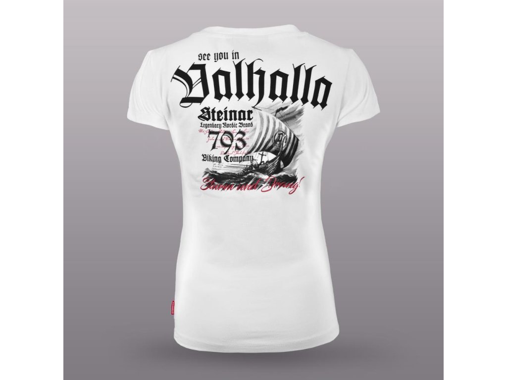Dámské triko Thor Steinar normálního střihu z předeprané bavlny s kulatým výstřihem. Na zádech kvalitní potisk a na hrudi decentní logo.