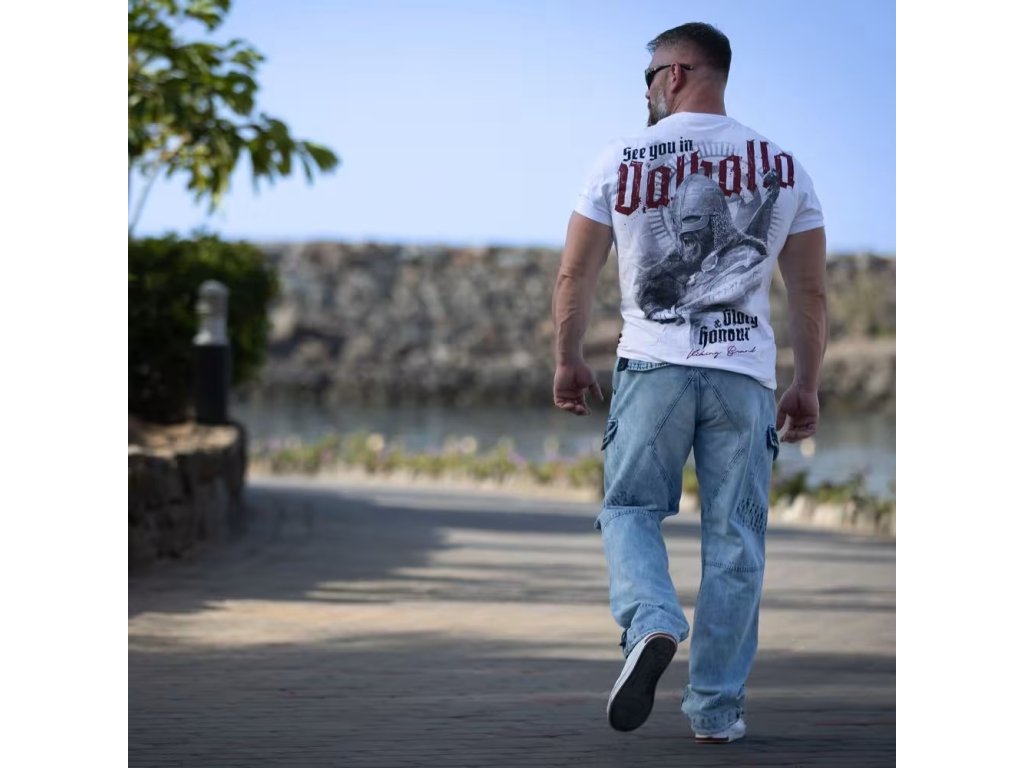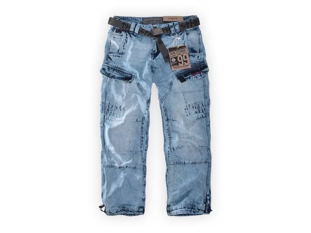 Pánské kapsáčové jeans Thor Steinar ze silné látky, tvarovaná kolena pro pohodlné nošení, na rozkroku a zadku dvojité prošití pro větší pevnost kalhot. Dvě boční kapsy, dvě stehení prostorné kapsy a malá kapsa na peníze. Na zadku dvě velké kapsy.