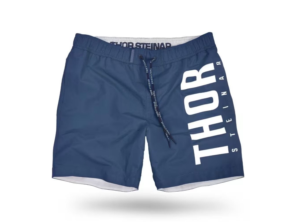 Pánské, krátké koupací a volnočasové šortky Thor Steinar z příjemného mikrovlákna. V pase stahování na šňůrku, dvě boční a jedna zadní kapsa na suchý zip. Vnitřní síťované spodky. Na stehně potisk .