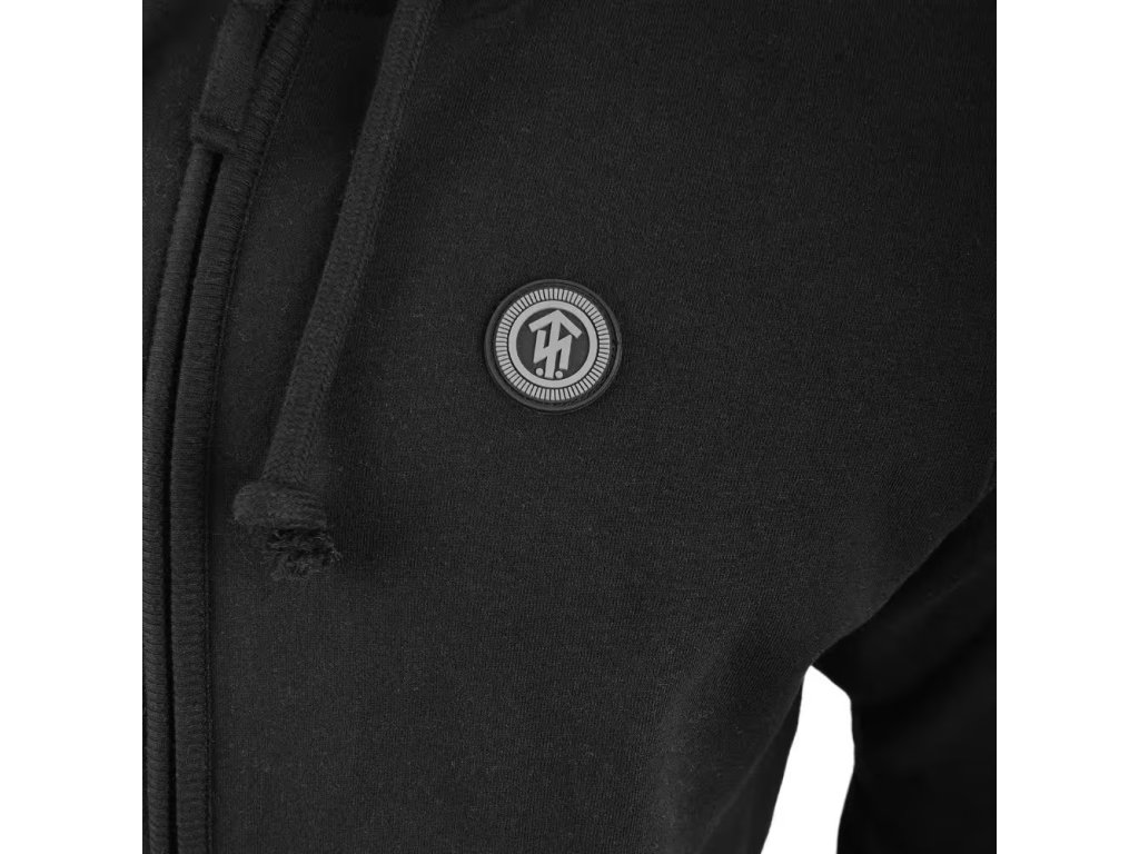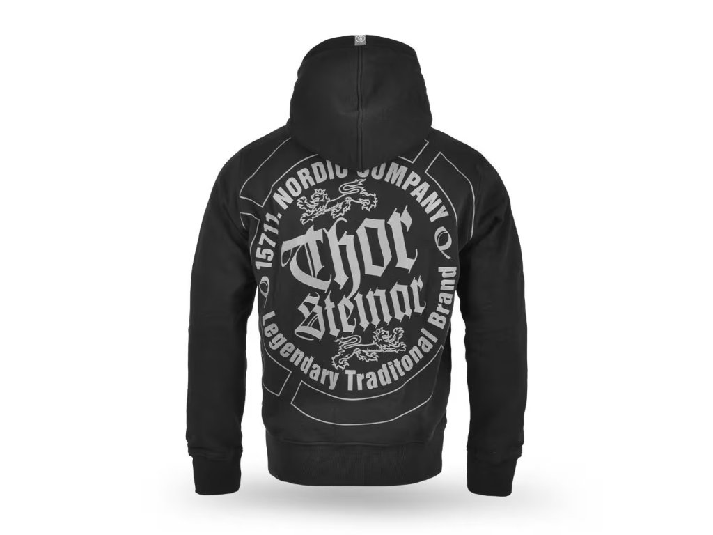 Pánská zipová mikina s kapucí Thor Steinar klasického střihu a velikosti. Dvakrát prošitá kapuce podšitá kontrastní látkou, dvě boční kapsy. Spodní lem a rukávové manžety jsou ze silného úpletu. Na zádech velký kvalitní potisk a na hrudi decentní výšivka.