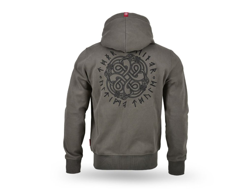 Pánská zipová mikina s kapucí Thor Steinar klasického střihu a velikostÍ. Dvakrát prošitá kapuce podšitá kontrastní látkou, dvě boční kapsy. Spodní lem a rukávové manžety jsou ze silného úpletu. Na zádech velká kvalitní nášivka a na hrudi decentní logo.