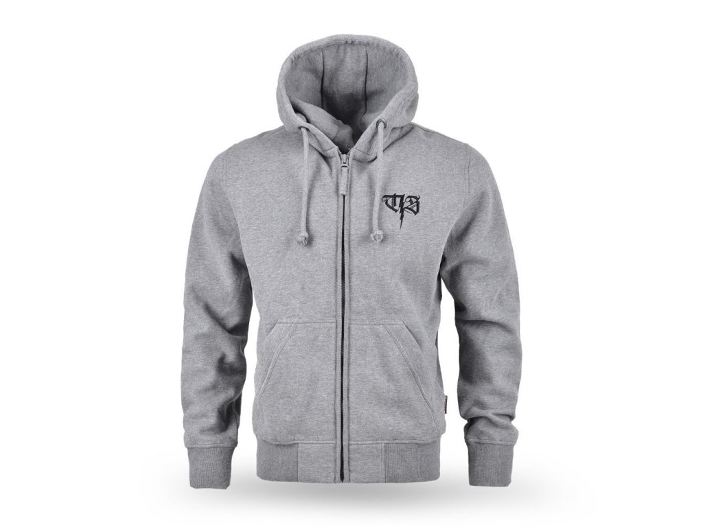 Pánská zipová mikina s kapucí Thor Steinar klasického střihu a velikosti. Dvakrát prošitá kapuce podšitá kontrastní látkou, dvě boční kapsy. Spodní lem a rukávové manžety jsou ze silného úpletu. Na zádech velká kvalitní nášivka. Na hrudi decentní logo.