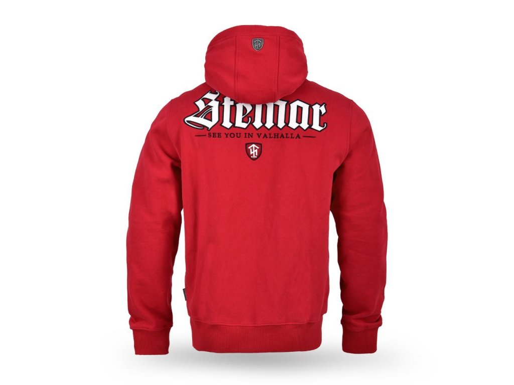 Pánská zipová mikina s kapucí Thor Steinar klasického střihu a velikosti. Dvakrát prošitá kapuce podšitá kontrastní látkou, dvě boční kapsy. Spodní lem a rukávové manžety jsou ze silného úpletu. Na zádech velká kvalitní nášivka. Na hrudi decentní logo.