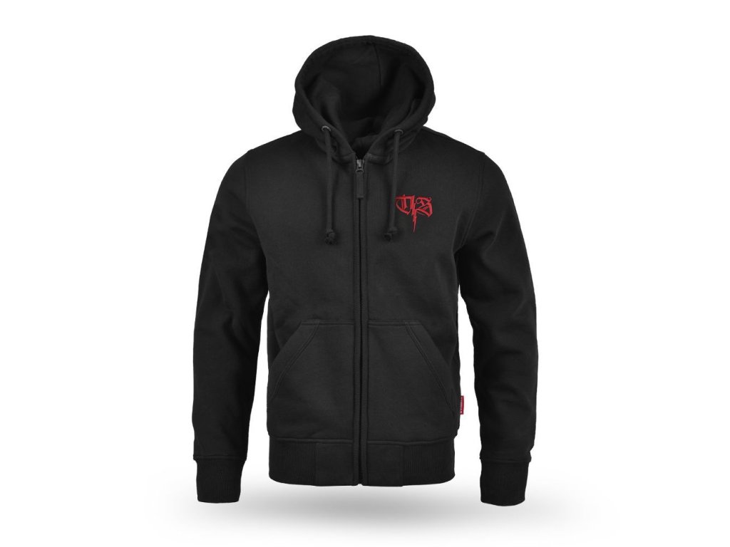 Pánská zipová mikina s kapucí Thor Steinar klasického střihu a velikosti. Dvakrát prošitá kapuce podšitá kontrastní látkou, dvě boční kapsy. Spodní lem a rukávové manžety jsou ze silného úpletu. Na zádech velká kvalitní nášivka. Na hrudi decentní logo.