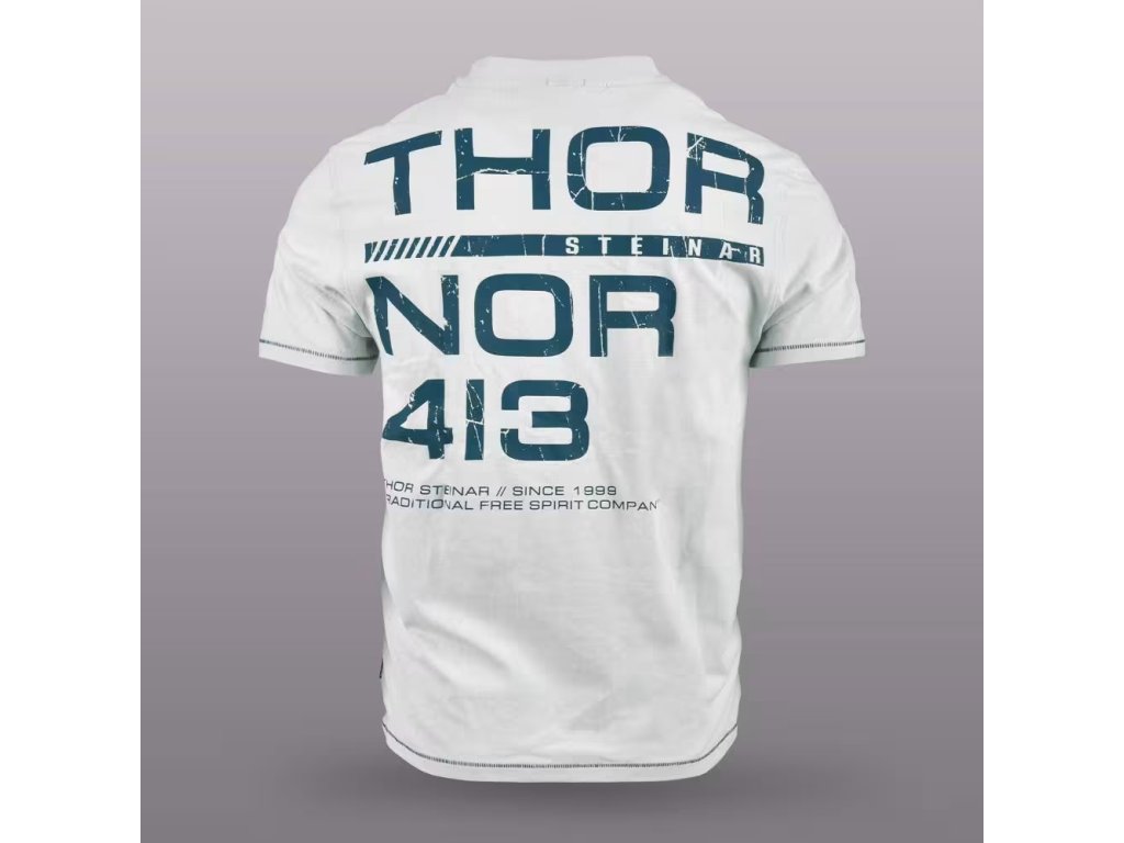 Pánské triko Thor Steinar klasického střihu a velikosti s kulatým výstřihem. Na vnitřní straně krku je stuha pro vysoký komfort při nošení. Na zádech kvalitní potisk, na hrudi malá výšivka.