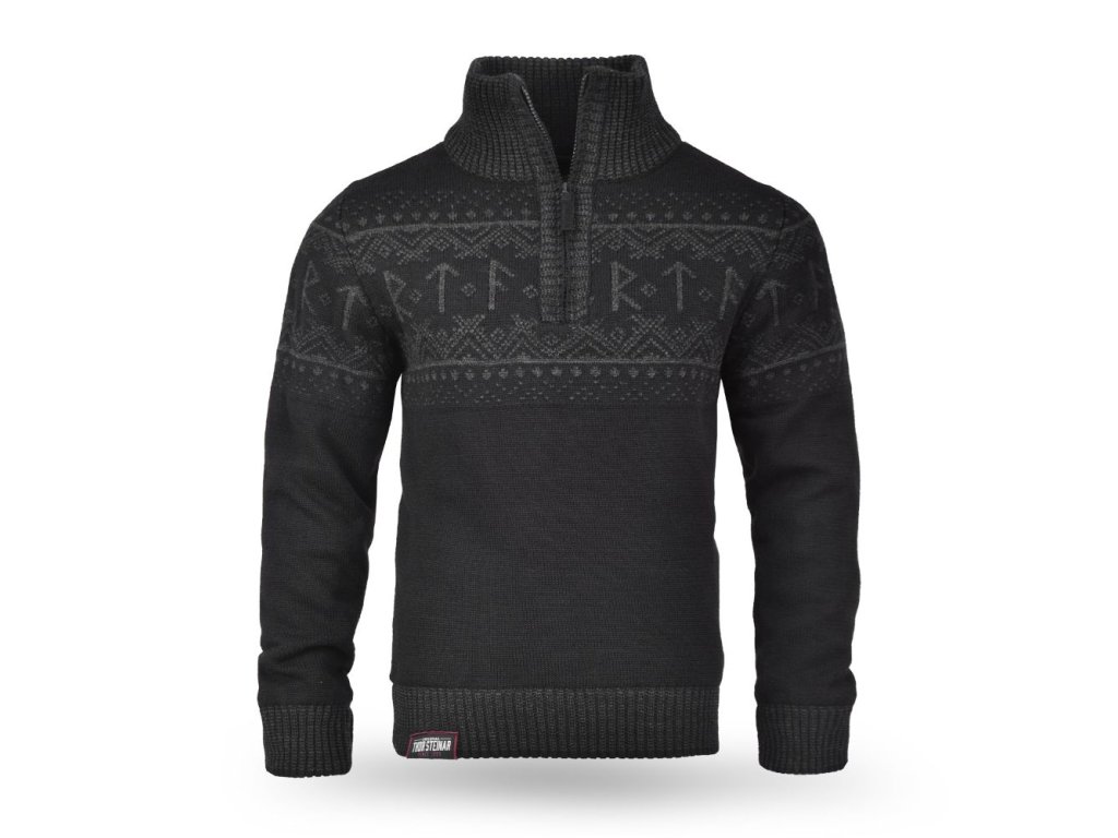 Pánský zeteplený svetr Thor Steinar se zapínáním na 3/4 zip. Velmi teplý svetr/bunda v severském stylu s podšívkou. Spodní lem a rukávové manžety jsou ze silného úpletu.