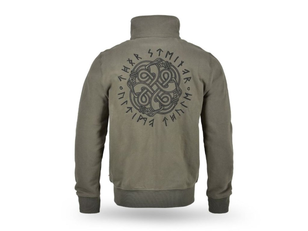 Pánská zipová mikina Thor Steinar klasického střihu a velikosti. Dvě boční kapsy. Spodní lem a rukávové manžety jsou ze silného úpletu. Na zádech velká kvalitní aplikace potisku. Na hrudi decentní potisk.